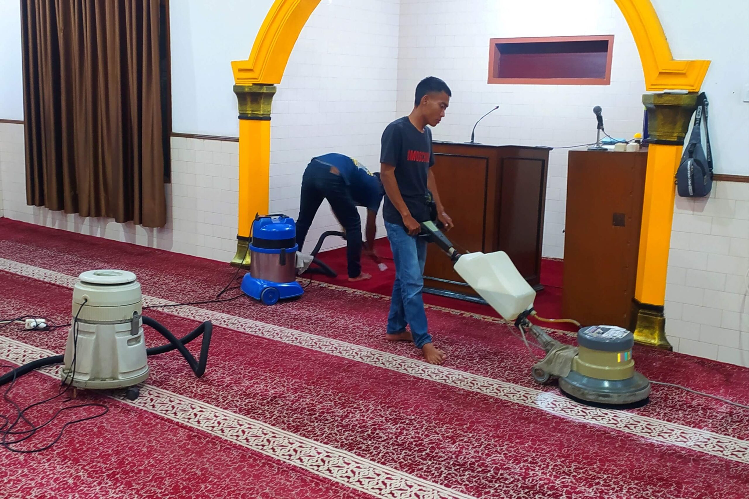Cuci karpet masjid, cuci karpet kantor, cuci lantai karpet, cuci karpet mushola, cuci karpet tangga, cuci karpet permadani.